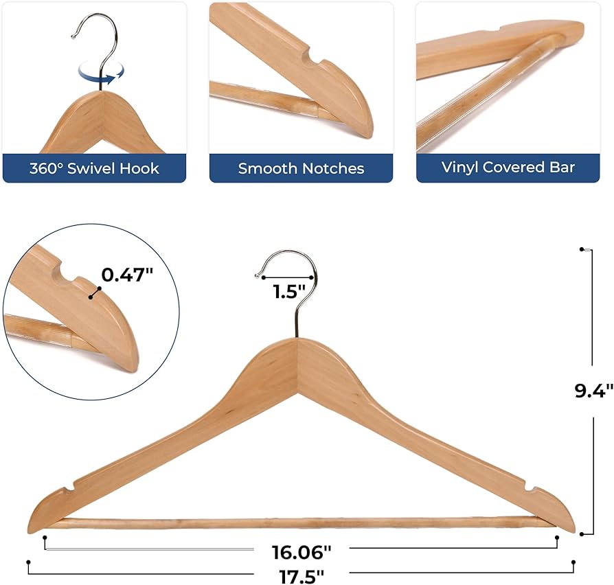 - Wooden hangers are highly durable and long-lasting, providing better support and preventing wrinkles. They help maintain the shape of your suits, especially delicate fabrics.