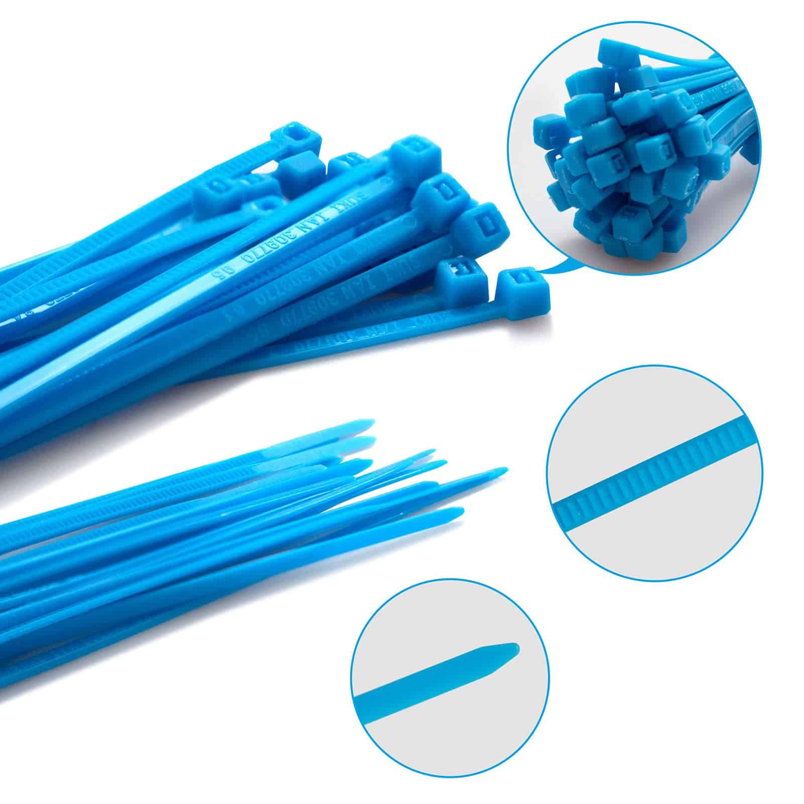 7″ Blue Nylon Cable Zip Ties made from durable nylon, are versatile fasteners commonly used for bundling and securing items.
