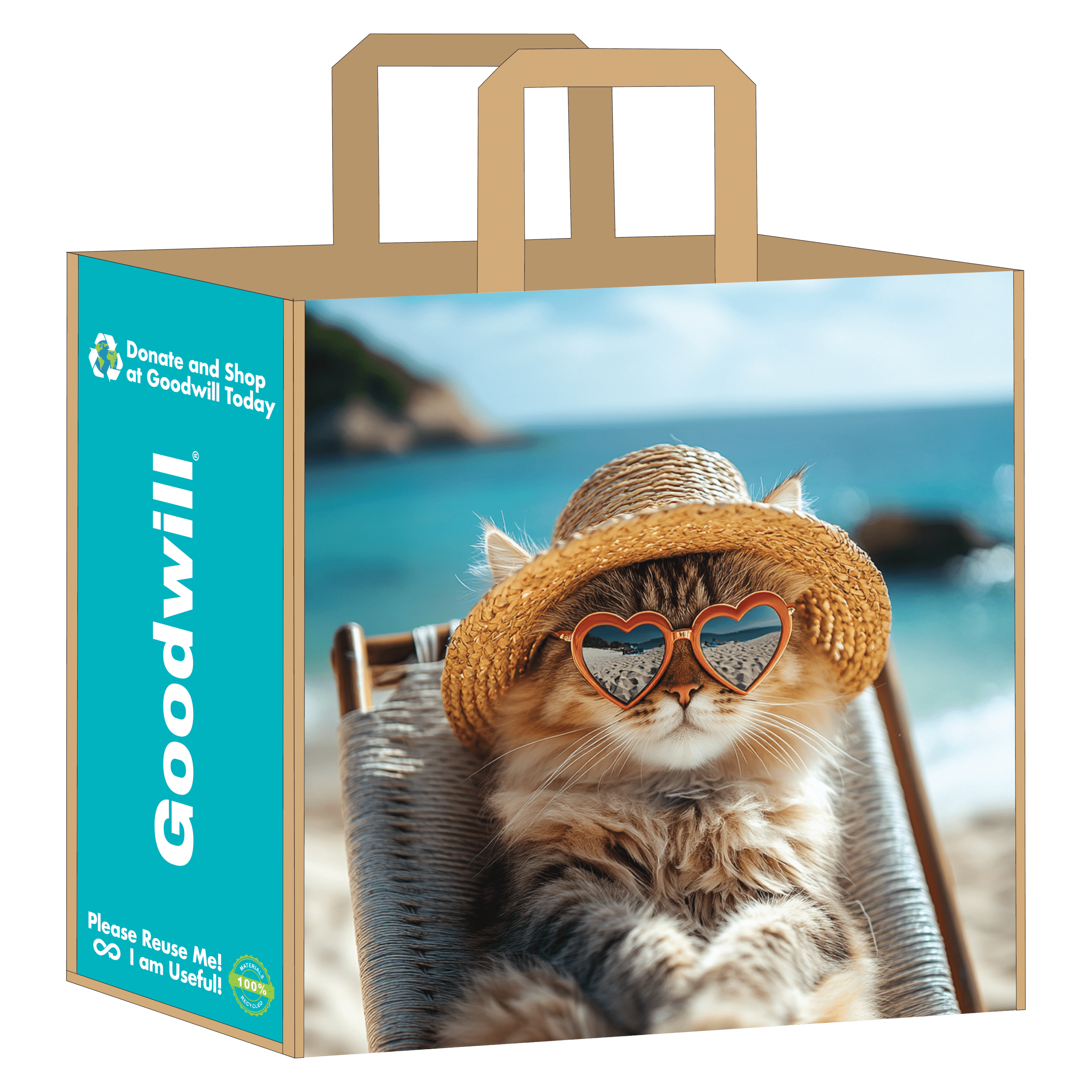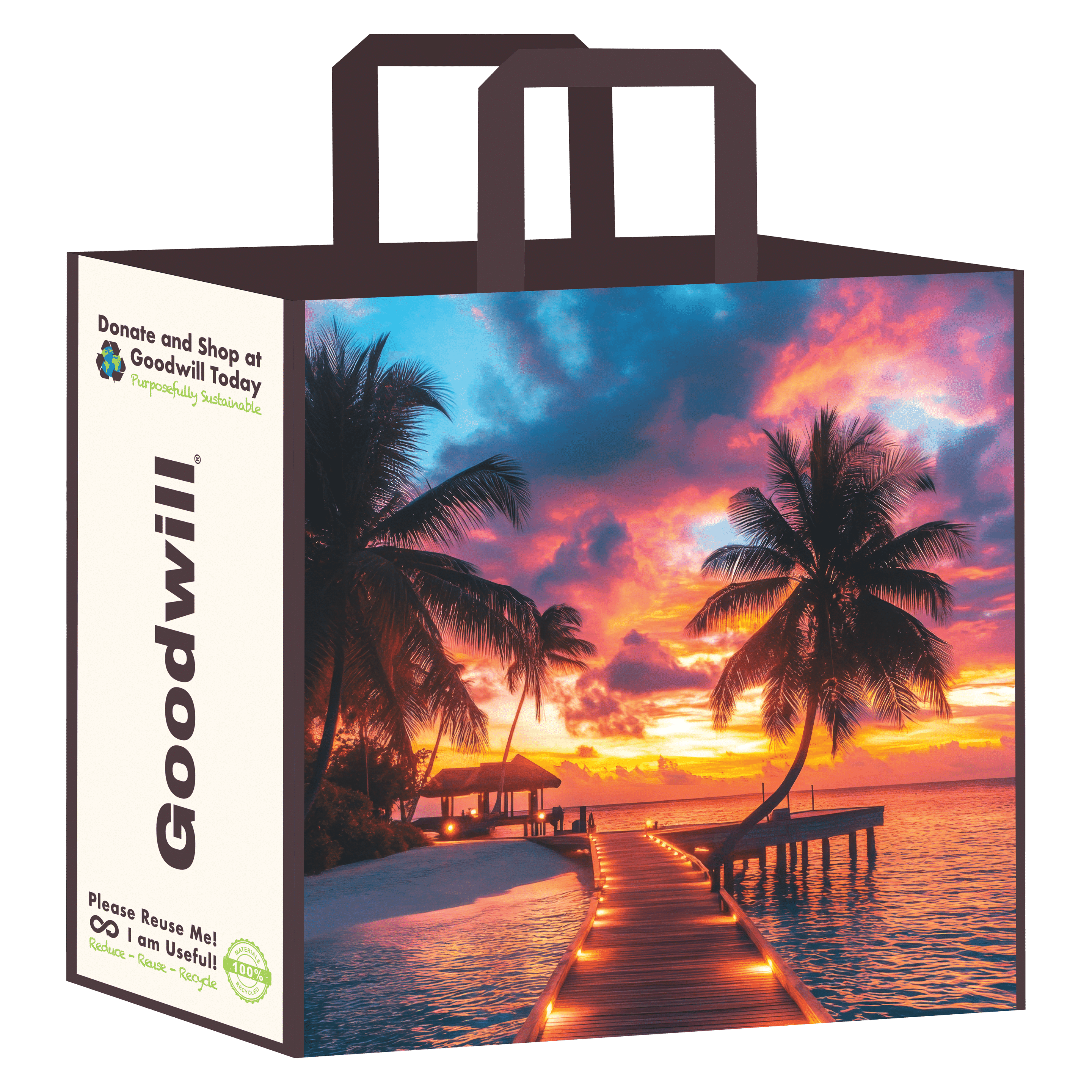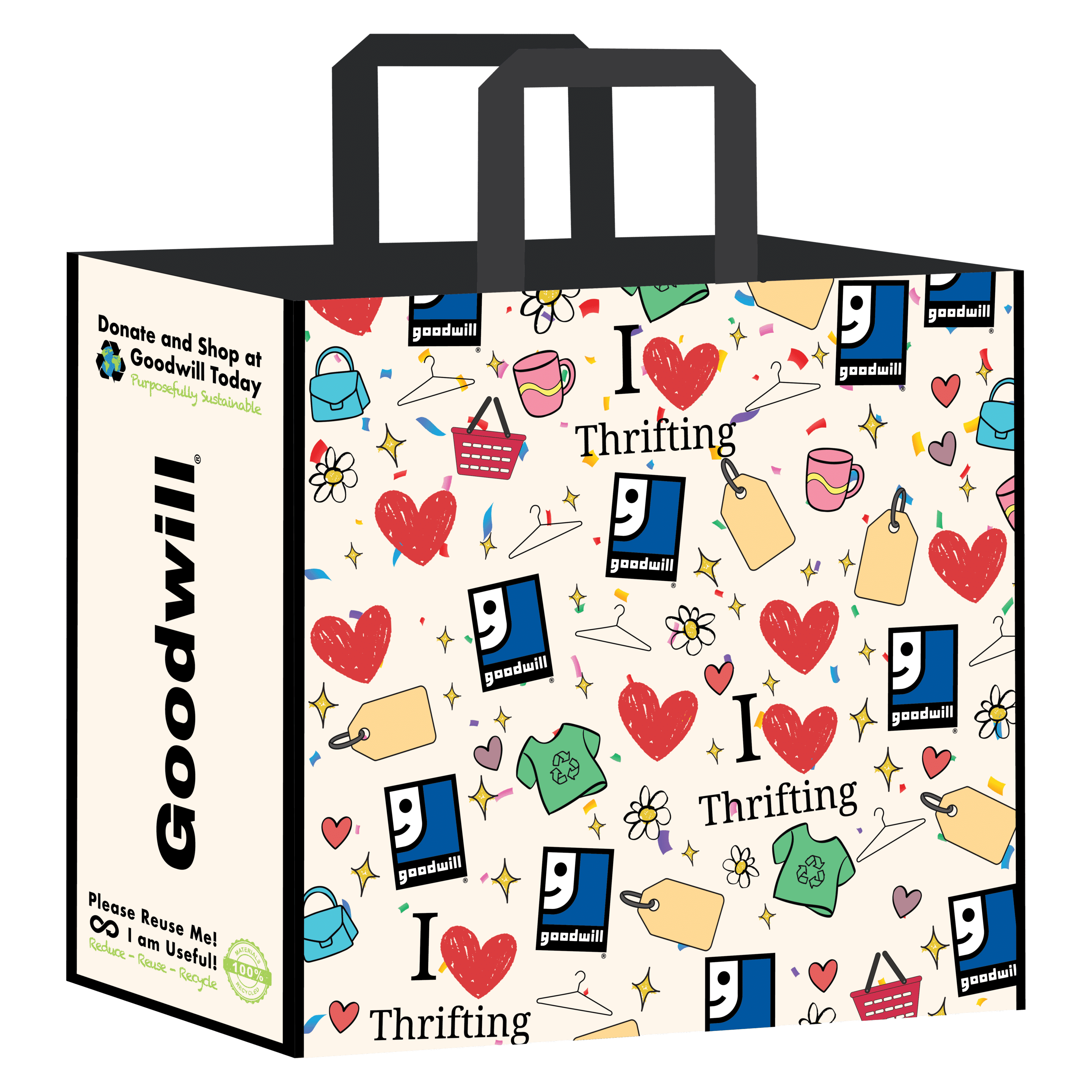 • Our Goodwill branded reusable shopping bags are sturdy and environmentally friendly. Made of polypropylene, 100% sustainable. These bags are undeniably perfect for multiple purposes.