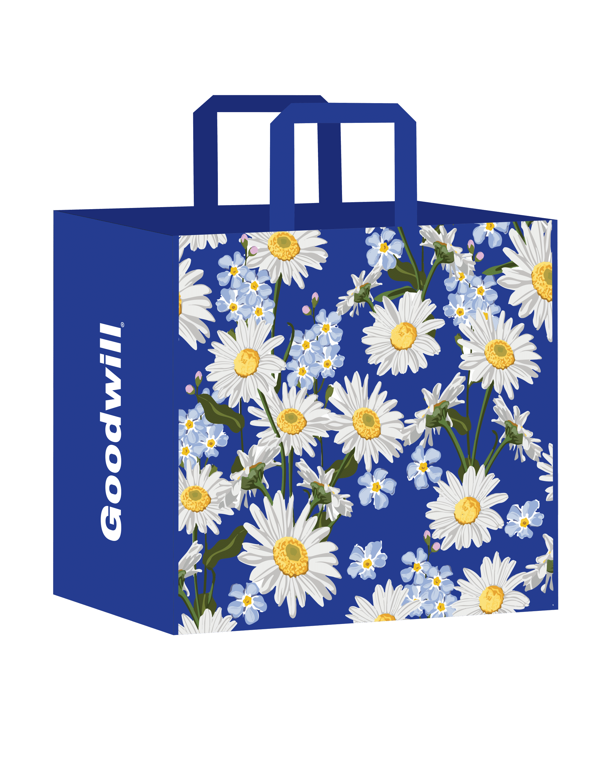 Our Goodwill branded reusable shopping bags are made from high quality polypropylene. Available in multiple beautiful designs, created with love by Freedom Distribution. Our shopping bags are lightweight, yet extremely durable. The extra-large capacity bags are foldable and measure 19.5″ wide x 7.5″ deep x 18″ tall which makes them quite versatile. As shown, our in-stock bags are branded GOODWILL but can be ordered with your logo or artwork designs. Contact our sales group regarding customized bags. Packaged 100 bags per case, 36 cases per pallet. Minimum order price is per pallet of 36 cases (100 bags per case/3,600 bags). Up to 4 designs per pallet can be combined.
