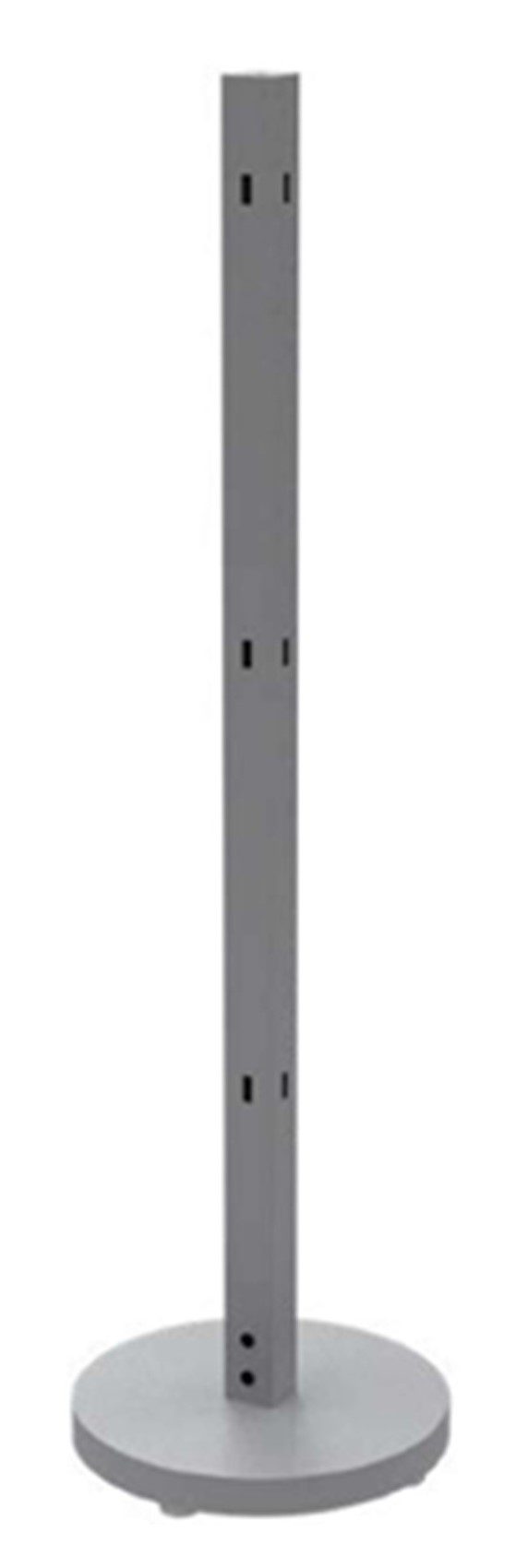 Our In-Queue post connects grid panel walls and end caps to create your Queuing Merchandise System. The square Post measures 2″ wide x 49.5″ tall with a 14” diameter weighted base. This post is metallic silver finish and works with most slatwall and gridwall accessories. Price is per in-queue post.