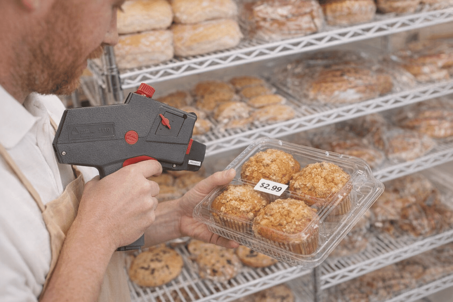 - The Monarch model 1110-06 price marking gun prints labels with ease.