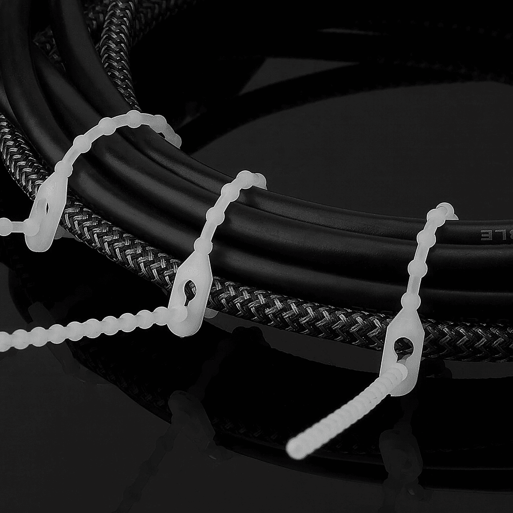- When bundling cords, stereo wires, AV cables, and other loose items, the beaded ties adjust easily.