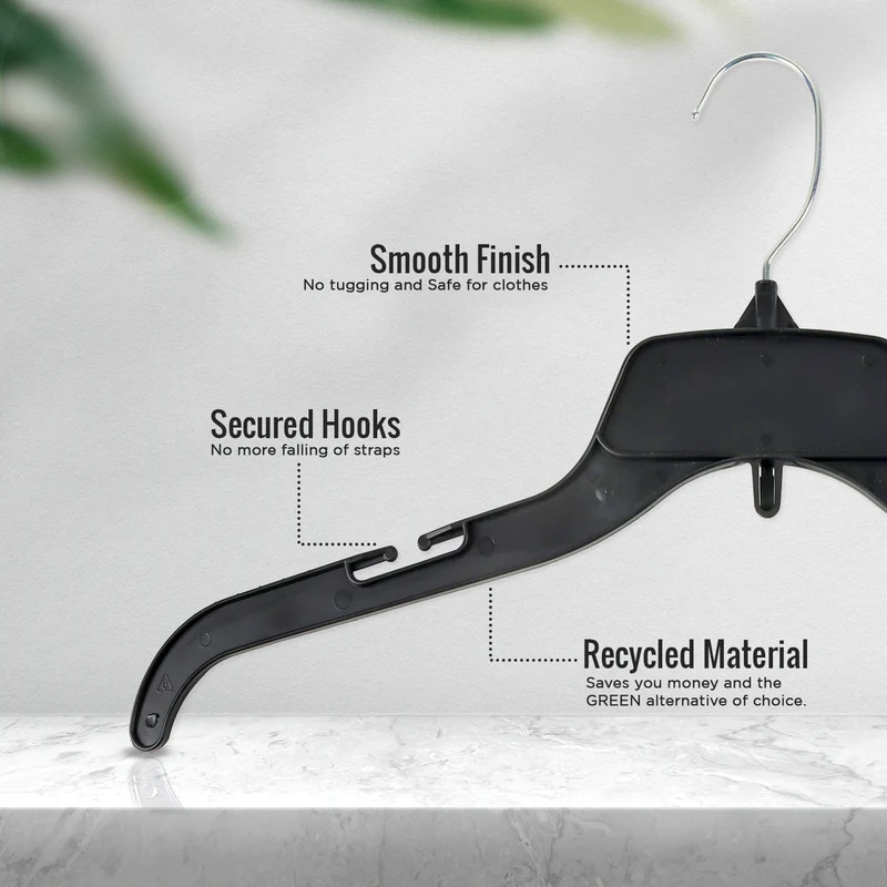 • Made from recycled plastic, this hanger reduces the demand for new plastic, contributing to environmental sustainability.