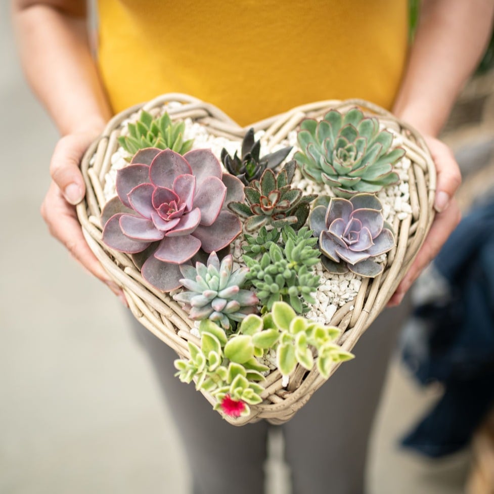 - Potted Plants or Succulents — Skip cut flowers and go for a living plant (like a heart-shaped succulent, trailing pothos, or “I Love You” engraved pot). Thrift a cute vintage planter or ceramic pot to make it extra special. Plants improve air quality and last way longer.